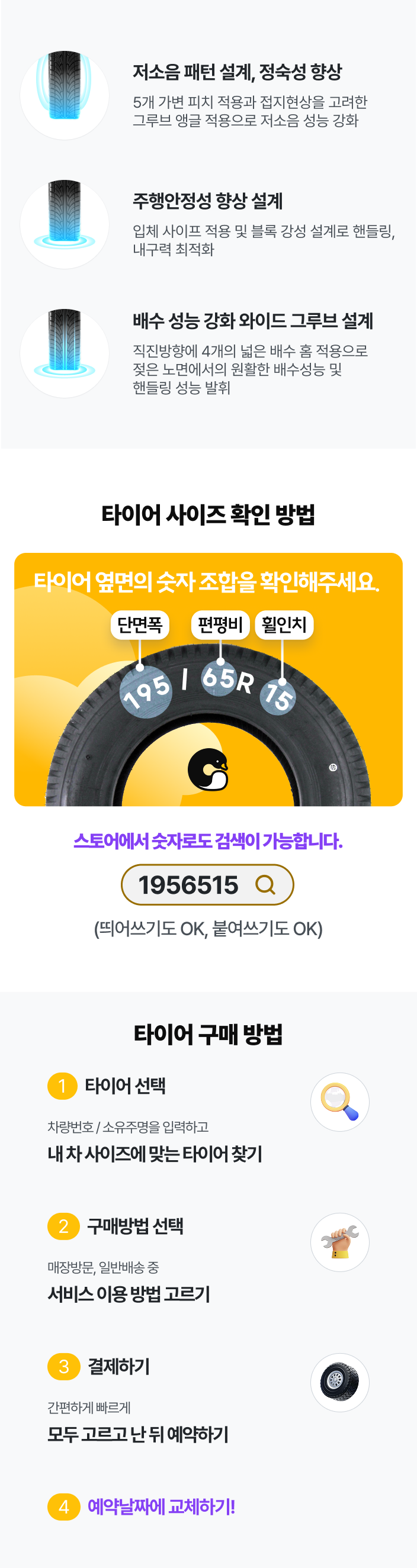 - 기존에 장착된 타이어가 런플랫일 경우, 매장별로 책정된 공임에 따라 추가 비용이 발생할 수 있습니다.