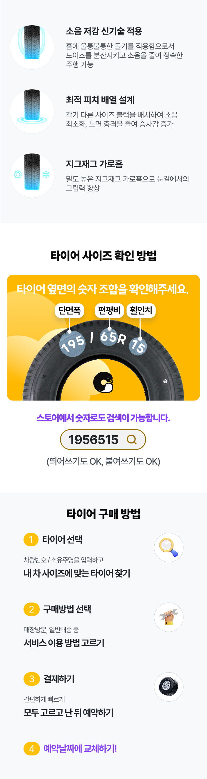 - 기존에 장착된 타이어가 런플랫일 경우, 매장별로 책정된 공임에 따라 추가 비용이 발생할 수 있습니다.