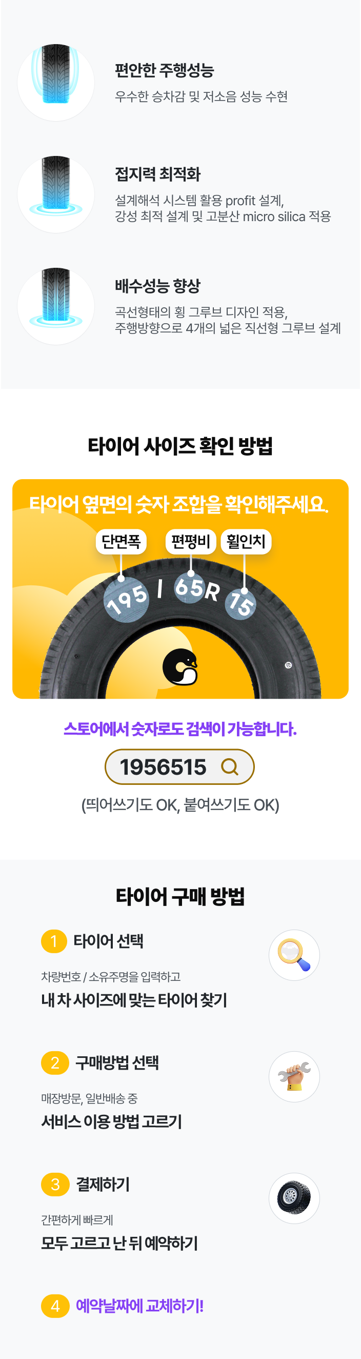 - 기존에 장착된 타이어가 런플랫일 경우, 매장별로 책정된 공임에 따라 추가 비용이 발생할 수 있습니다.