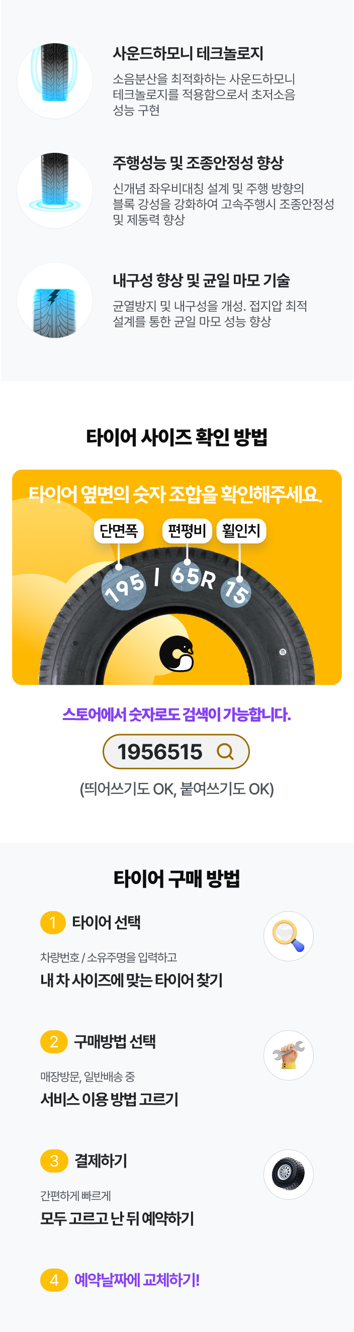 - 기존에 장착된 타이어가 런플랫일 경우, 매장별로 책정된 공임에 따라 추가 비용이 발생할 수 있습니다.